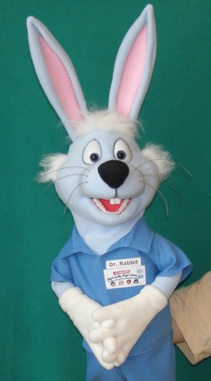 Dr. Rabbit puppet created from picture on page www.colgate.com